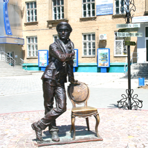 | Скульптурна композиція літературному герою Остапу Бендеру перехрестя проспекту Богдана Хмельницького та вулиці Героїв України, м.Мелітополь |